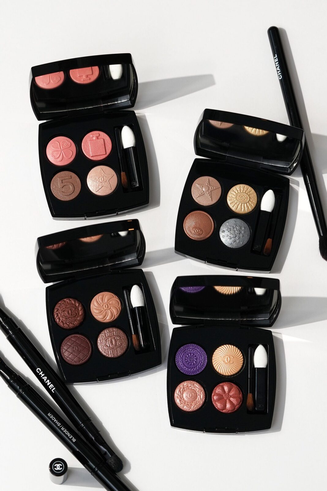 There are four variations each with such beautiful elegant embossing with button designs. As a long-time Chanel fan and beauty collector I bought all four and I think they are beautiful. They are on the softer side pigment-wise but I love the textures and finishes.