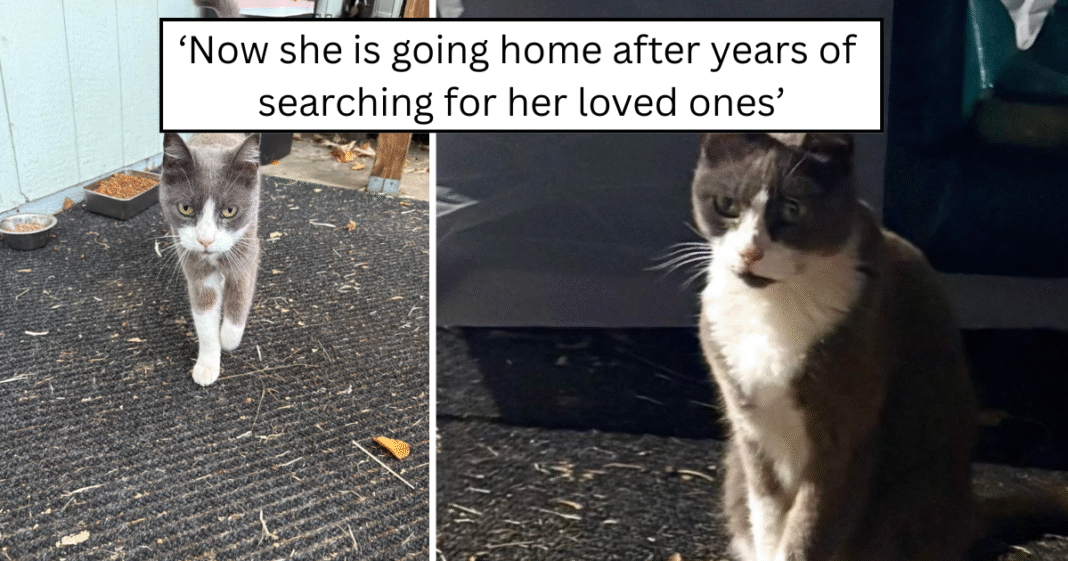 When attempts to get her to the vet failed, her rescuer took matters into their own hands and ordered a microchip scanner. The moment the chip was scanned, everything changed. Billie wasn’t a stray at all. She was Gray, a beloved cat who had been missing for four long years and had somehow traveled 100 miles from home.