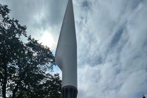 Rising over fifty feet into the sky above Northern Virginia suburbs is “The Pike,” a large sculpture composed of a reclaimed wind turbine wing and a steel base studded with coins from around the world. A public art installation created by Donald Lipski, the piece is intended to serve as the western gateway of 3-mile Columbia Pike, one of the oldest thoroughfares in the region and often referred to as Arlington, VA’s “Main Street.” Lipski specifically chose a wind turbine wing due to its unique shape and its reference to the creation of North America’s first windmill in Virginia in the 1600s.