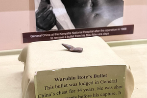 One of the most iconic artifacts from this era, which can be found in Nairobi National Museum, is a bullet which was fired by the British on Mau Mau fighter Waruhiu Itote in 1954 and which stayed with him for the next 34 years. Itote, also known as General China, was a major player in the armed struggle against the British, and nearly paid for it with his life during a skirmish on the slopes of Mount Kenya.