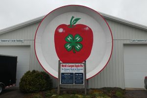 But Orleans County was the only record-setter to preserve the tin in which their pie was baked, and that tin is still proudly displayed. The pan received a new paint job and updated signage in 2022 as part of the 75th Orleans County Fair. Today, you can view the pan along with a sign of the pie’s recipe with the tin’s dimensions next to the Lartz Commercial Exhibit Building. With a diameter of over 16 feet, the pan is the world’s largest apple pie tin – try bringing that to Thanksgiving!